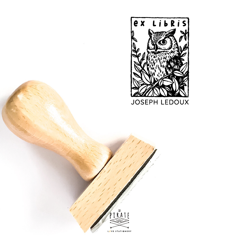 Tampon ex libris personnalisé Chouette, ex-libris oiseau nature sagesse, pour marquer vos livres de manière unique
